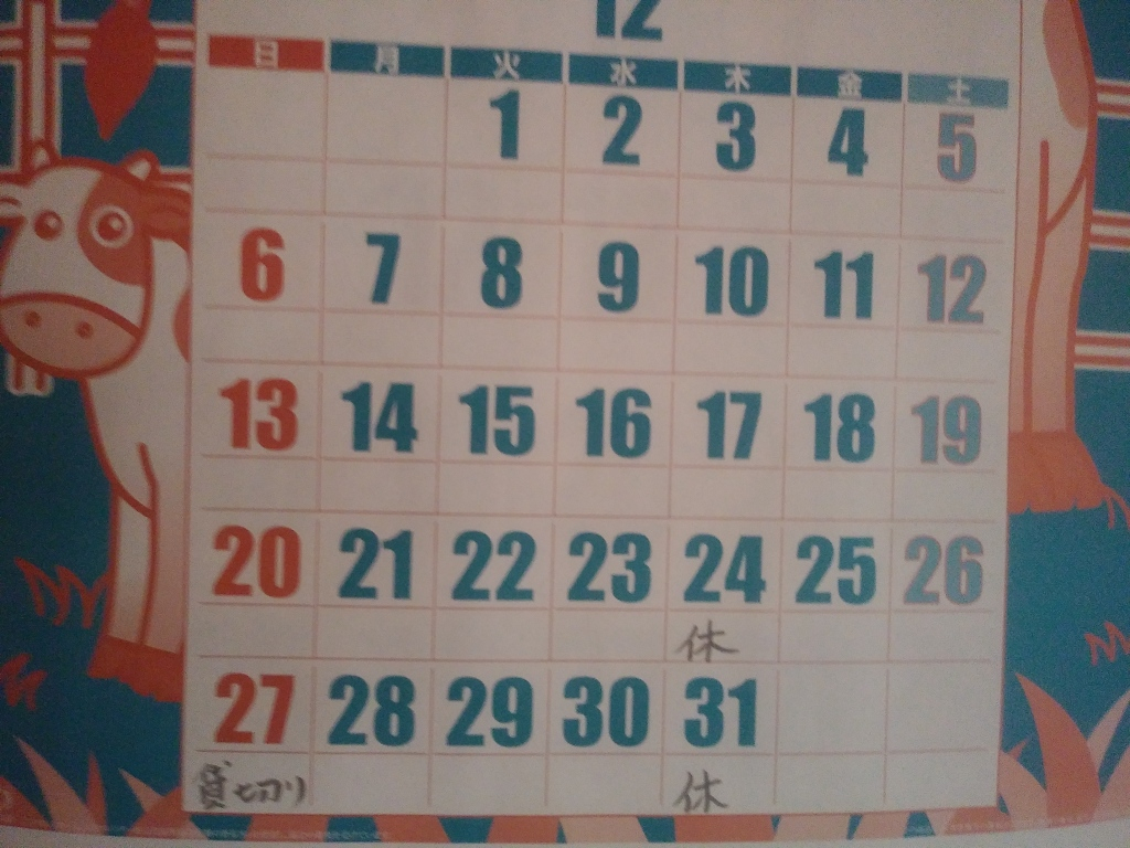 12月の休業日
